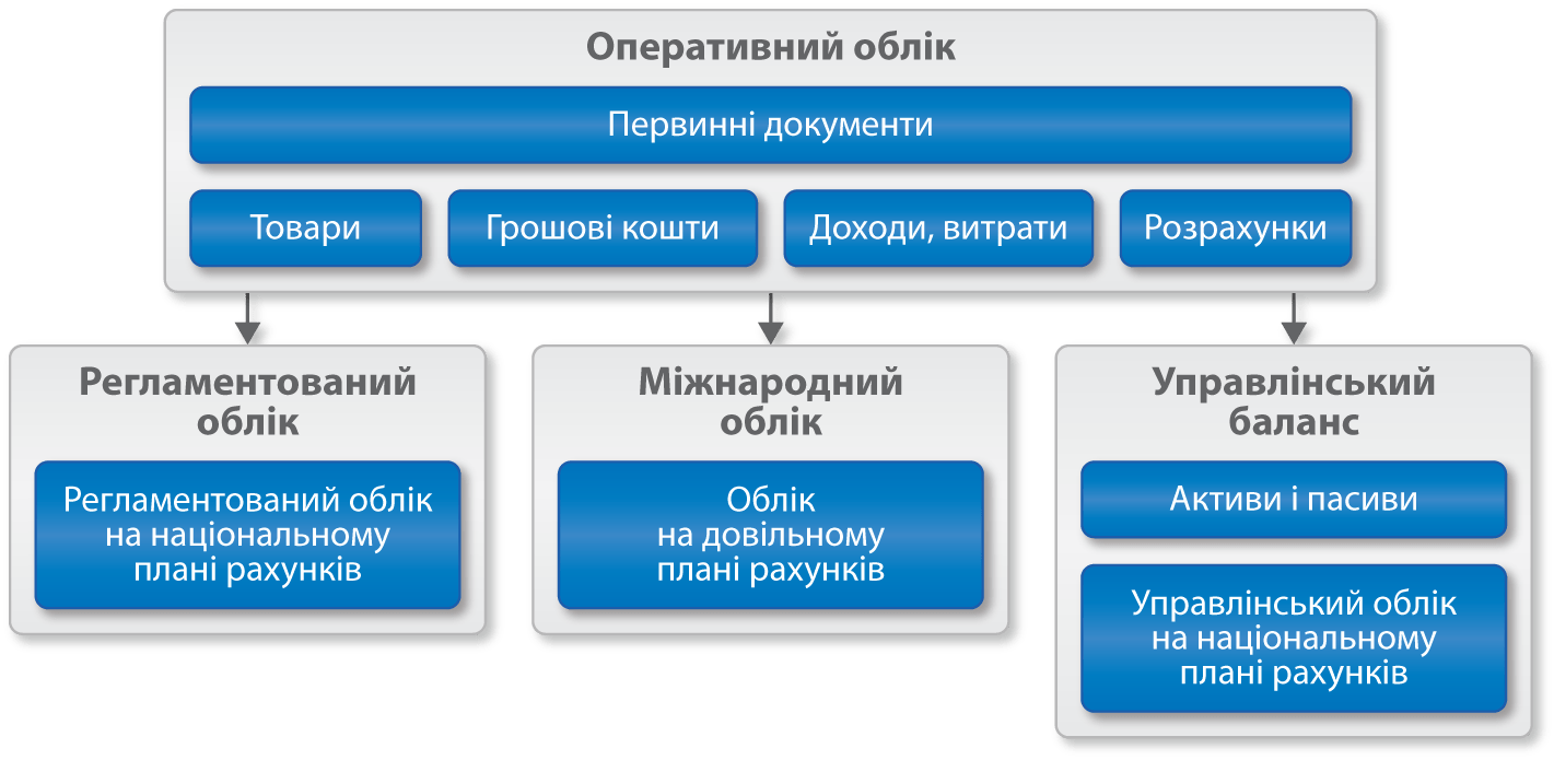 - Розподіл витрат і доходів за напрямами діяльності як в управлінському, так і в регламентованому обліку;