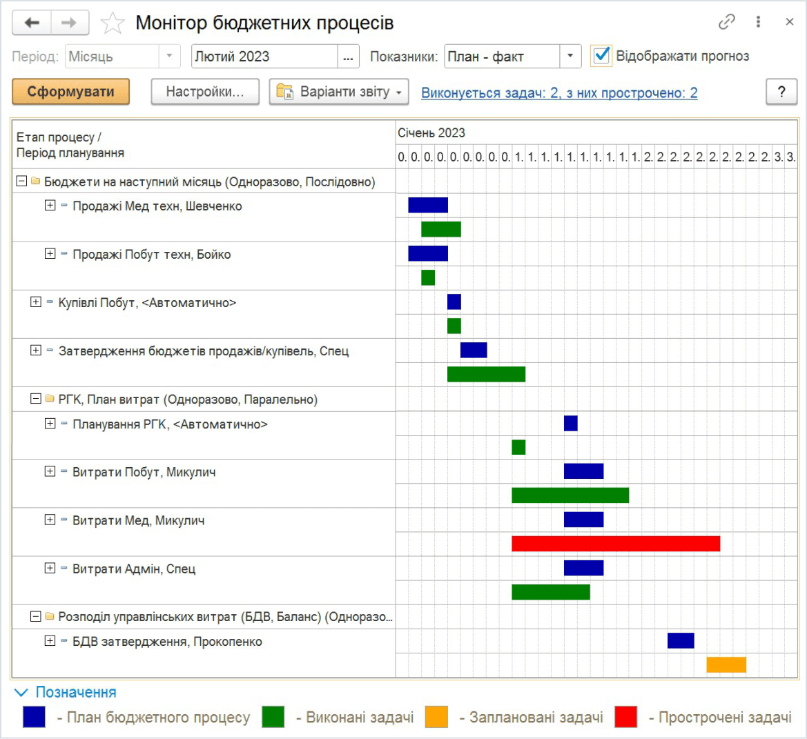 - Контроль лімітів витрат відповідно до затверджених бюджетів;