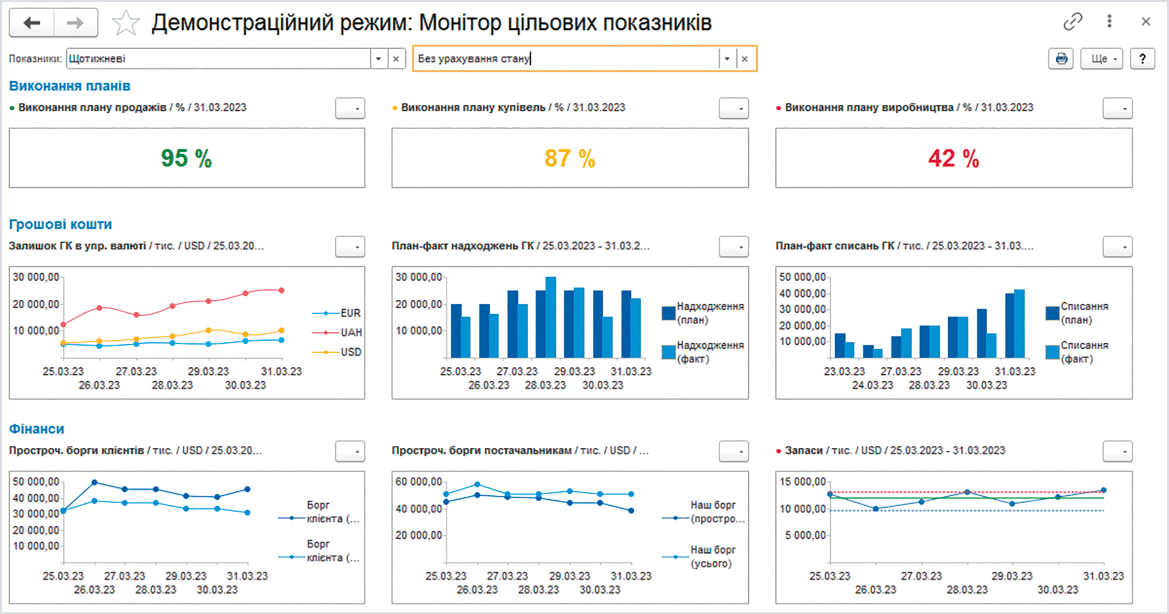 - Оперативний контроль KPI — дозволяє швидко реагувати на відхилення від плану.