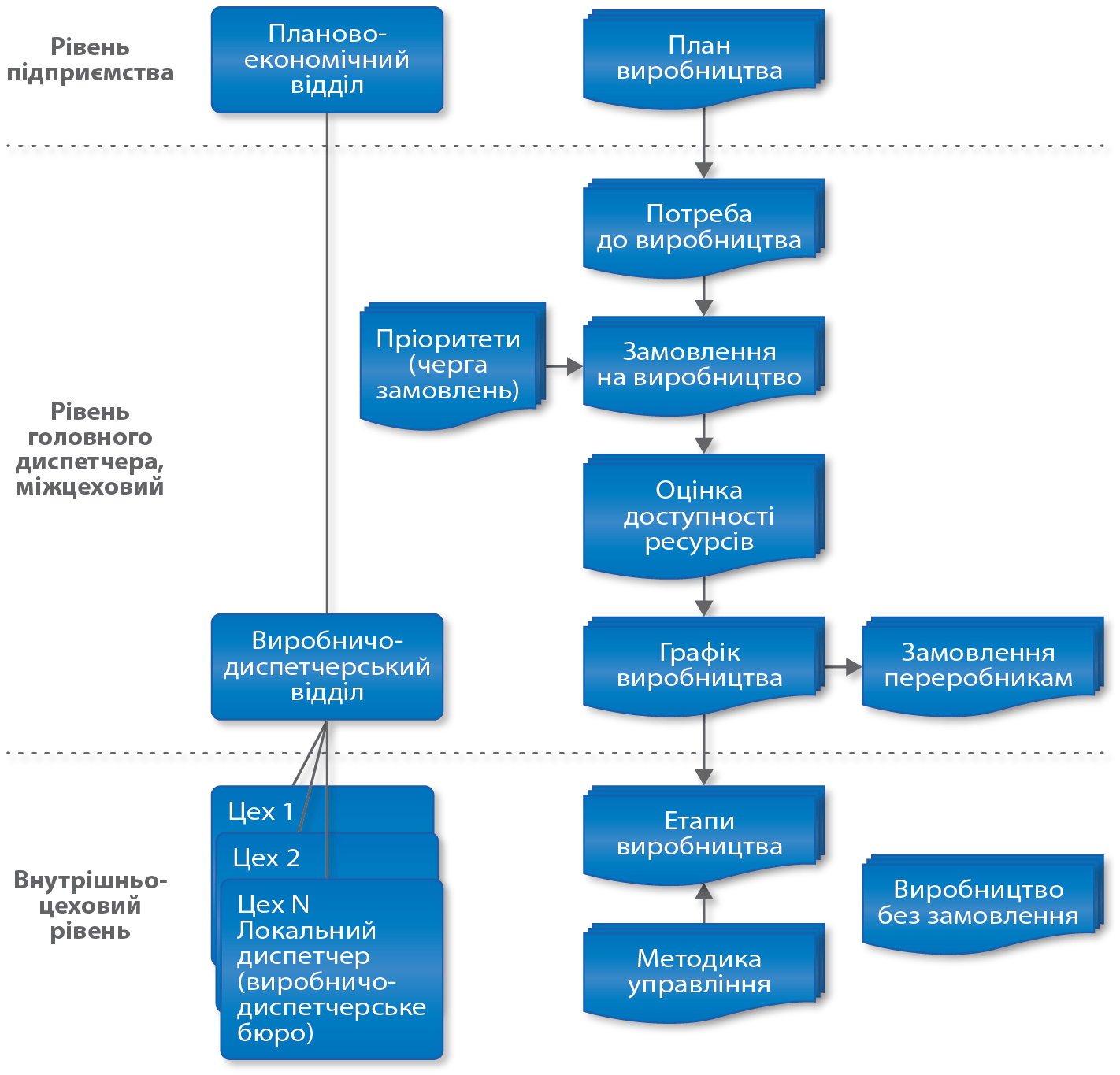 Управління масовим та позамовним виробництвом. Три рівні управління виробництвом