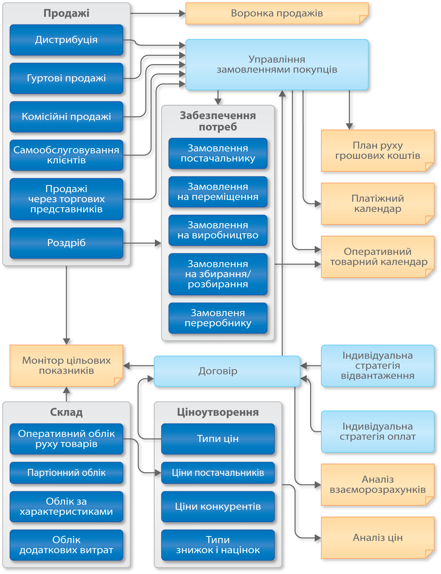 - Планування та облік закупівель і продажів;