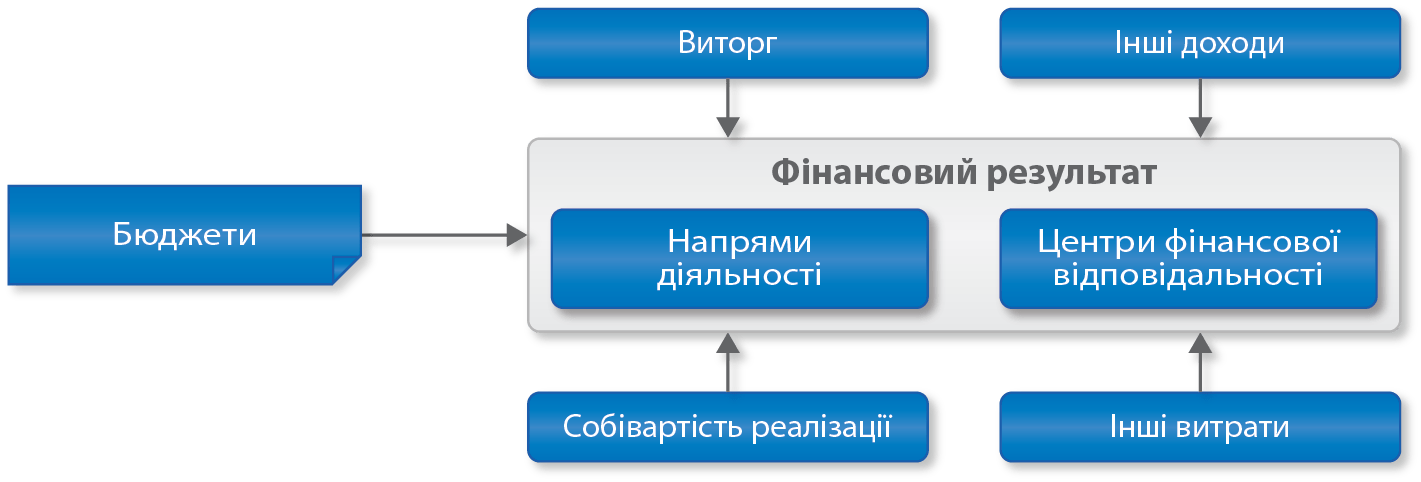 - наскрізне управління, що охоплює планування, облік і розрахунок фінансових результатів (прибуток/збиток).