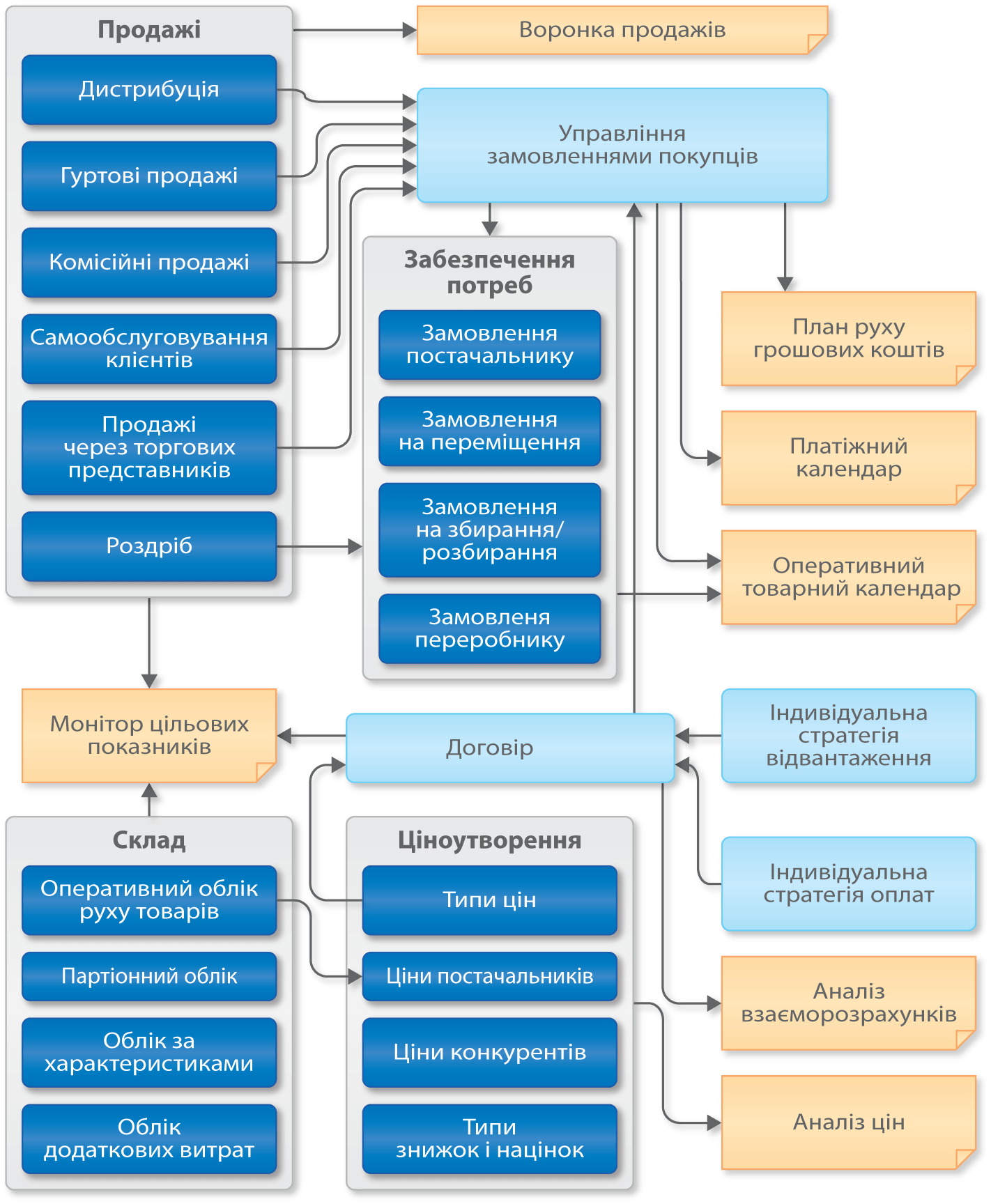 - Визначення джерел потреби для контролю виконання конкретних замовлень.